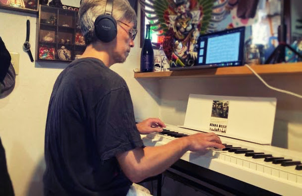 近所迷惑にならないように、基本ヘッドフォンを着けてサイレントでやっていて、一生懸命練習してうまくなったな、と思ったら、初めて音を出して家族に披露しています(笑)。