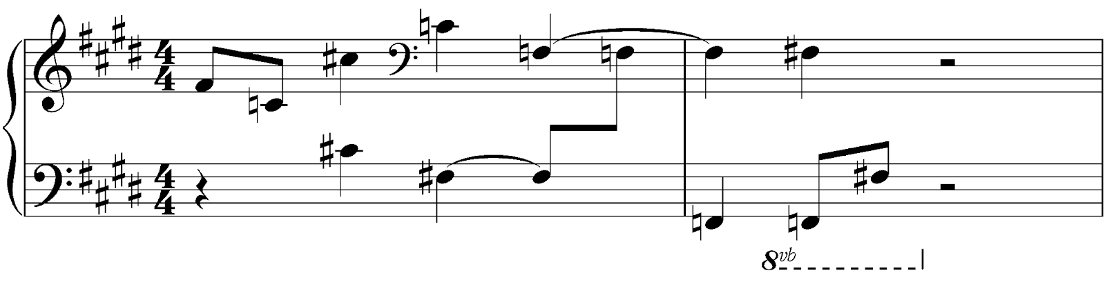 それと同じようにト音記号とヘ音記号で慣れてしまった鍵盤奏者にとって、両方ともト音記号で書くというのは逆に読みづらくて採用されませんでした。