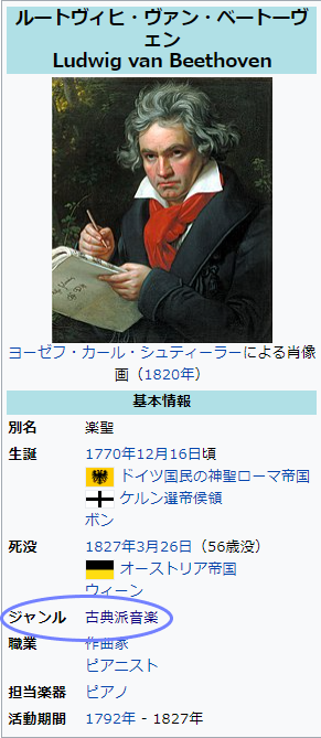 「ジャンル 古典派音楽」の部分に注目です!