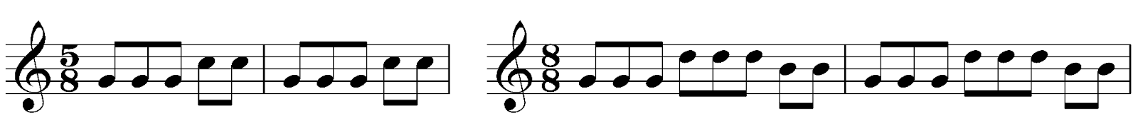 たとえば、3/4拍子の1拍を3分割して、9/8拍子という複合拍子を作ることができます。