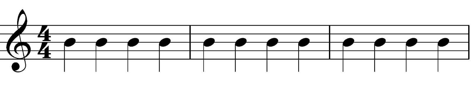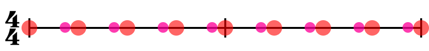 このような定義があるにも関わらず、慣習的に4拍子は単純拍子に分類されます。たとえば、4/4拍子は、2拍でまとめて、2拍子にすることができますが、単純拍子として扱います。この扱いの違いは、次の項の強拍と弱拍に関係してきます。