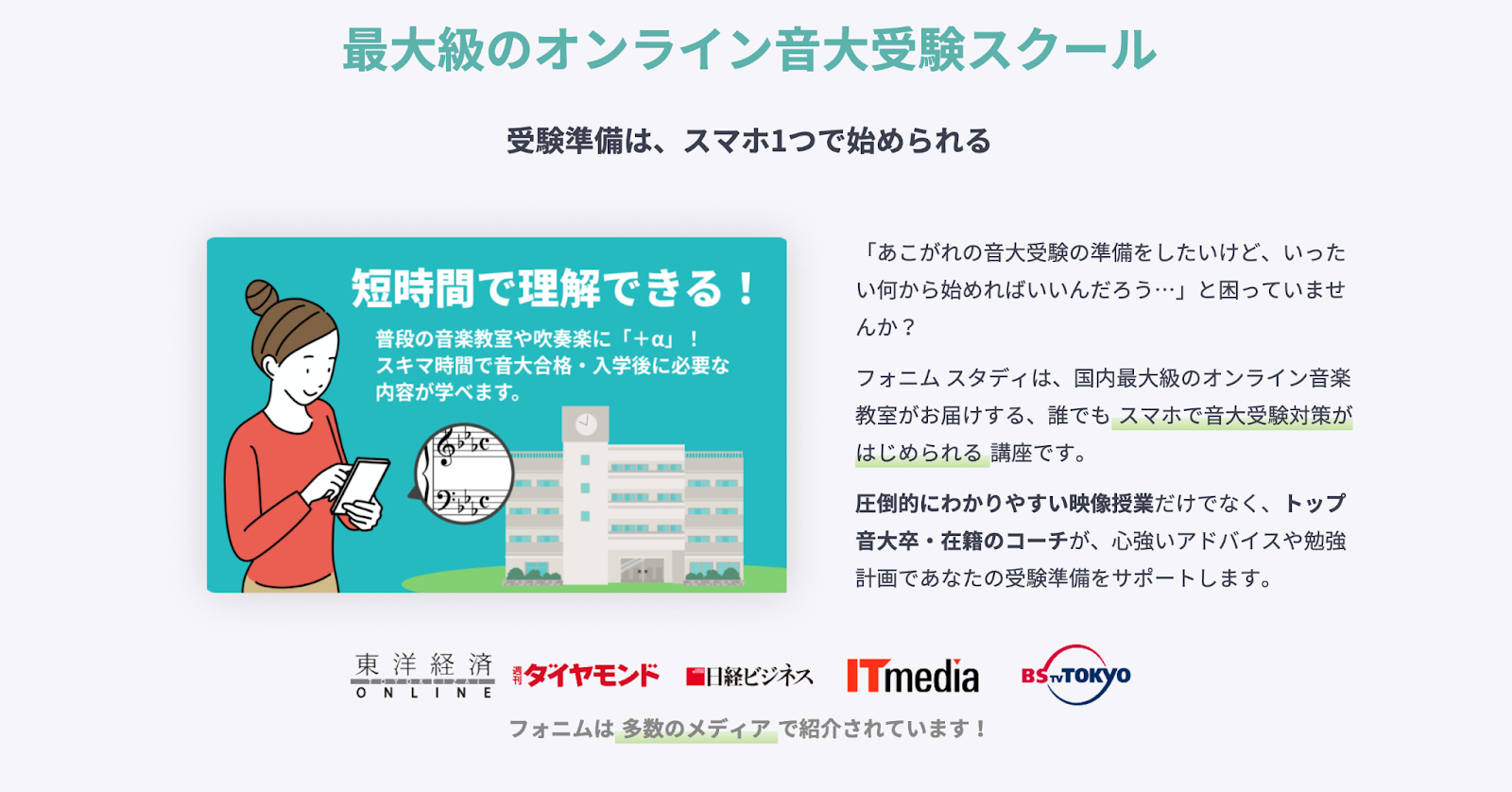 また有名音楽大学卒の音楽家があなたの音大受験をバックアップするコーチ付プラン(+月額10,980円)もあります。
