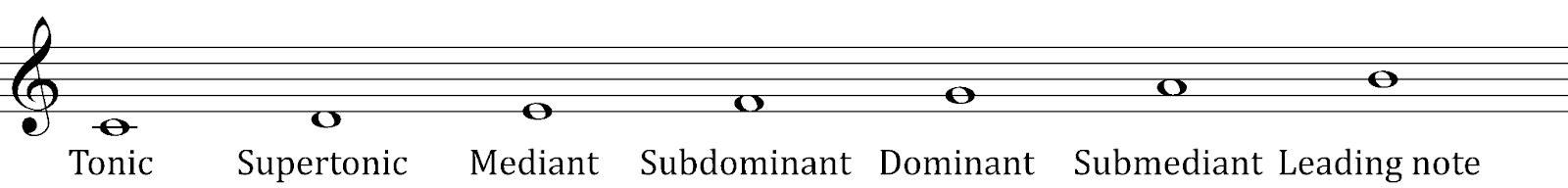 3番めの音は、主音と属音のちょうど真ん中なので中音(mediant)