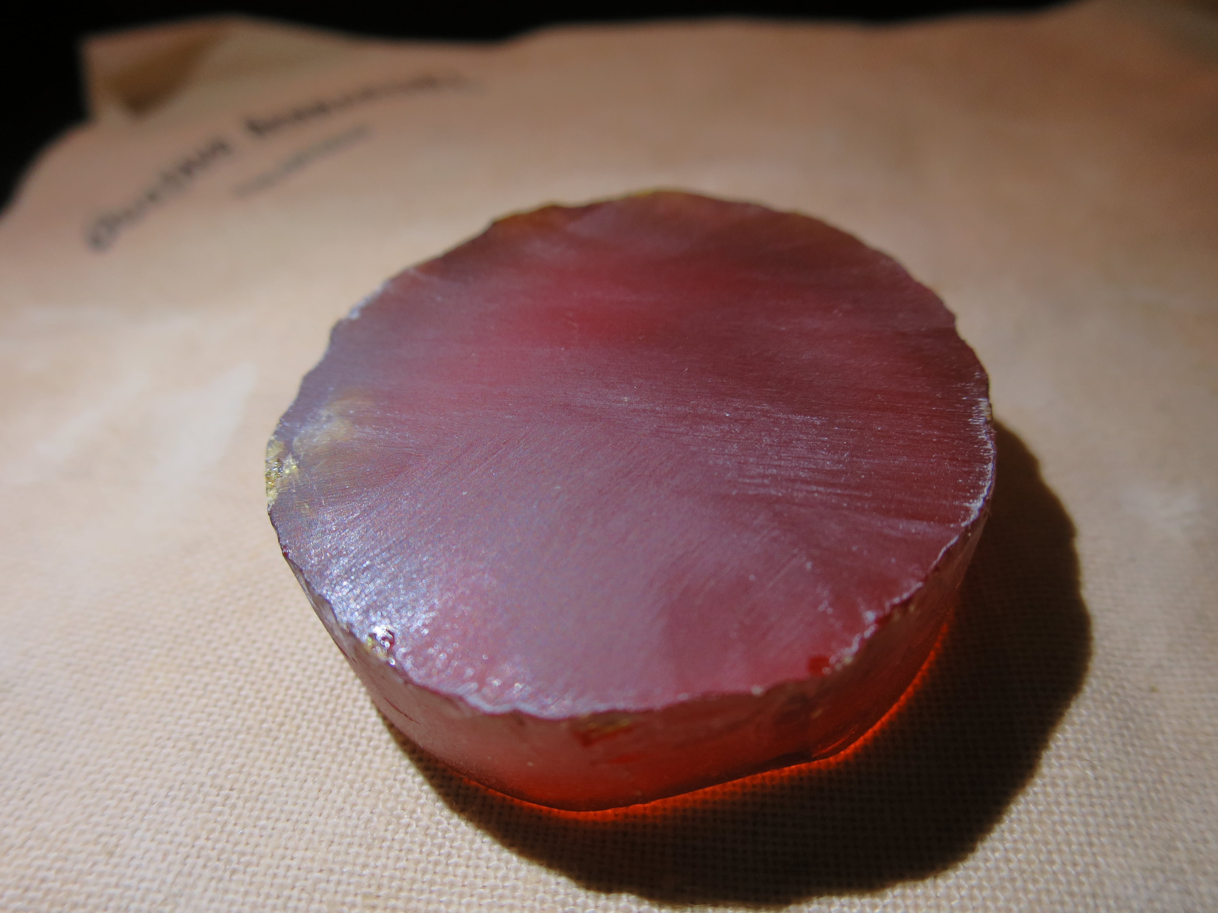 新品の松脂は、表面がツルツルとしていて粉が毛に付きづらいので、松脂の表面が少し白っぽくなるまで毛に塗り続けてください。