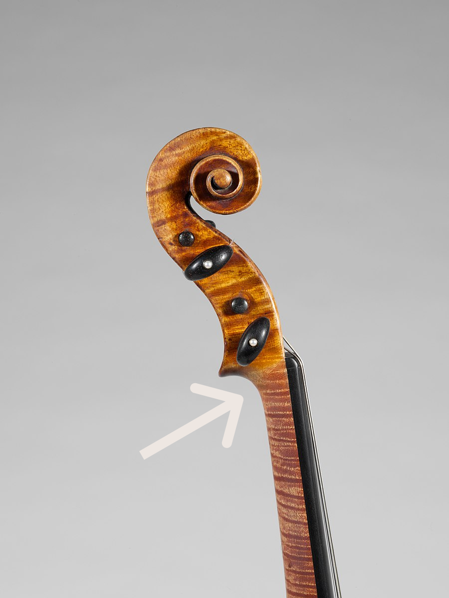現代のヴァイオリンに見られる「あご当て」もこの時代に後で取り付けられたものです。
