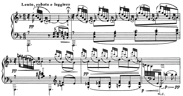 なお、ソステヌートペダルを踏んでいても、ダンパーペダルを同時に使う必要があります。さらにこの部分はppと極めて弱音ですから、弱音ペダルも使いたくなります。