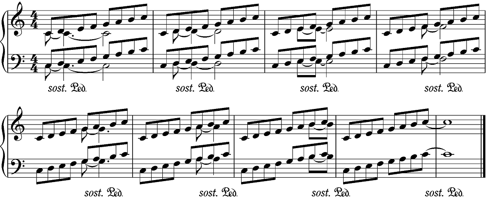 他にも様々なソステヌートペダルの練習方法がありますが、まずはソステヌートペダルの仕組みを理解して、実際の曲で使えるかどうかを考えていくことが大切です。