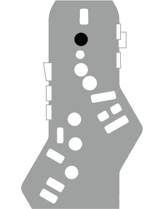 左手の親指を、三日月型のオクターヴキーが二つ付いている円形の場所に置きます。