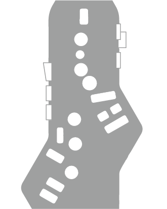 エアロフォンはサックスを基調とした楽器ですので、サックスを吹いたことがある方でしたら、同じように構えていただければOKです。指使いもほとんどサックスと同じです。構えたことがない方は、次のように持ってみましょう。