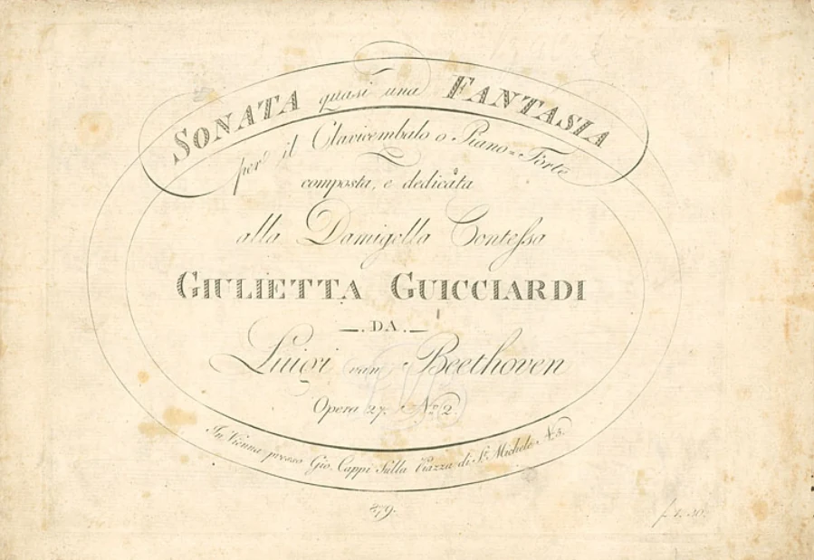 「月光」というのは通称で、ベートーヴェンがつけたと思われる正式なタイトルは、「チェンバロまたはピアノのための幻想曲風ソナタ」(SONATA quasi una FANTASIA per il Clavicembalo o Piano - Forte)です。