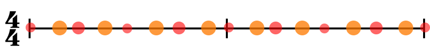 このような定義があるにも関わらず、慣習的に4拍子は単純拍子に分類されます。たとえば、4/4拍子は、2拍でまとめて、2拍子にすることができますが、単純拍子として扱います。この扱いの違いは、次の項の強拍と弱拍に関係してきます。
