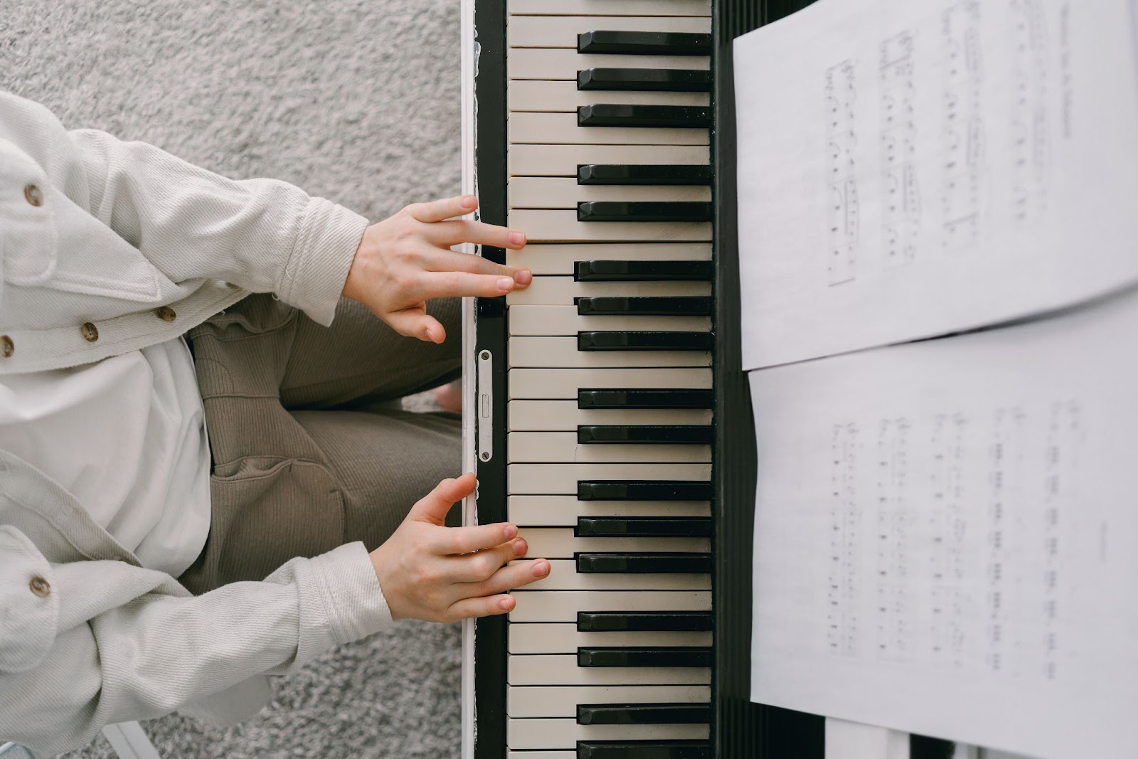 右手と左手がそれぞれ動くようになると、簡単な曲はすぐに弾けるようになります。しかも、伴奏と旋律を同時に弾けるようになります。色々な楽器にある「音を鳴らす練習」という部分をあまり気にしなくても良いため、初めて曲が弾けるようになるまでの期間は短くてすみます。また、弾く鍵盤の位置が分かってしまえば、楽譜を読むことができなくても演奏できるため、お手本動画を観ながらでも練習しやすいのがポイントの高いところです。初心者のうちからたくさんの曲を弾くことができます。