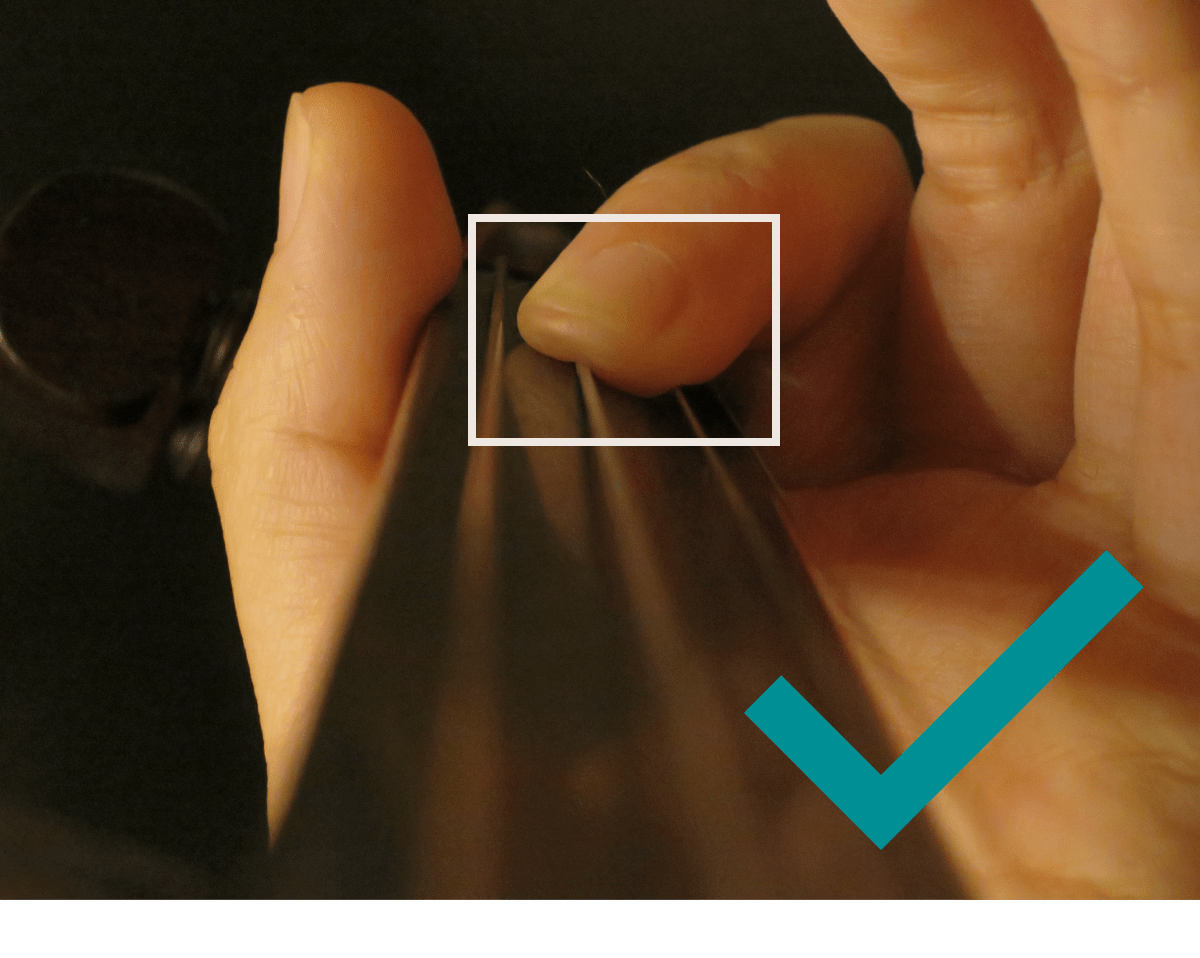 コツは左手の親指と強く挟むことです(重要!)。