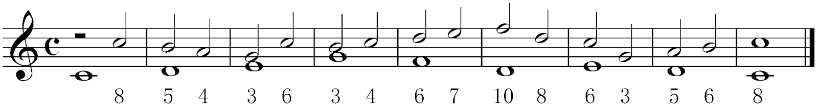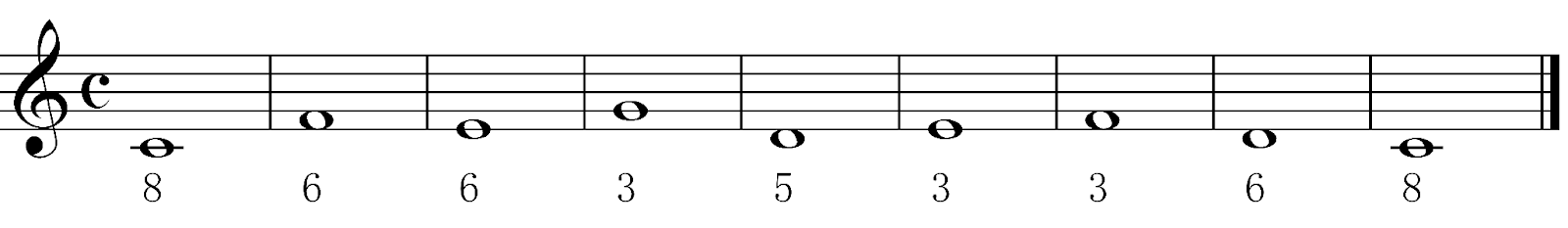 まず、数字が付いた定旋律(C.F.)を提示します。