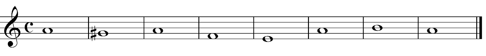 ☆では、実際に二分音符対位法を試してみましょう。例によって、定旋律を書きます。