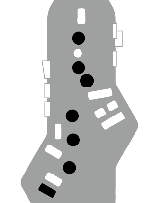 ここまで7つの音を吹いてみて、お気づきの方もいるかもしれません。そう、リコーダーとほとんど同じ指使いです!サックスはリコーダーほど単純な作りはしていませんが、基本的な指使いは一緒なのです。