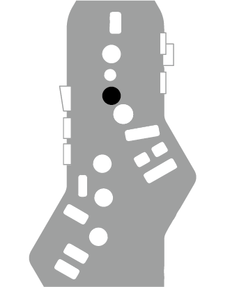 左手の親指を、三日月型のオクターヴキーが二つ付いている円形の場所に置きます。
